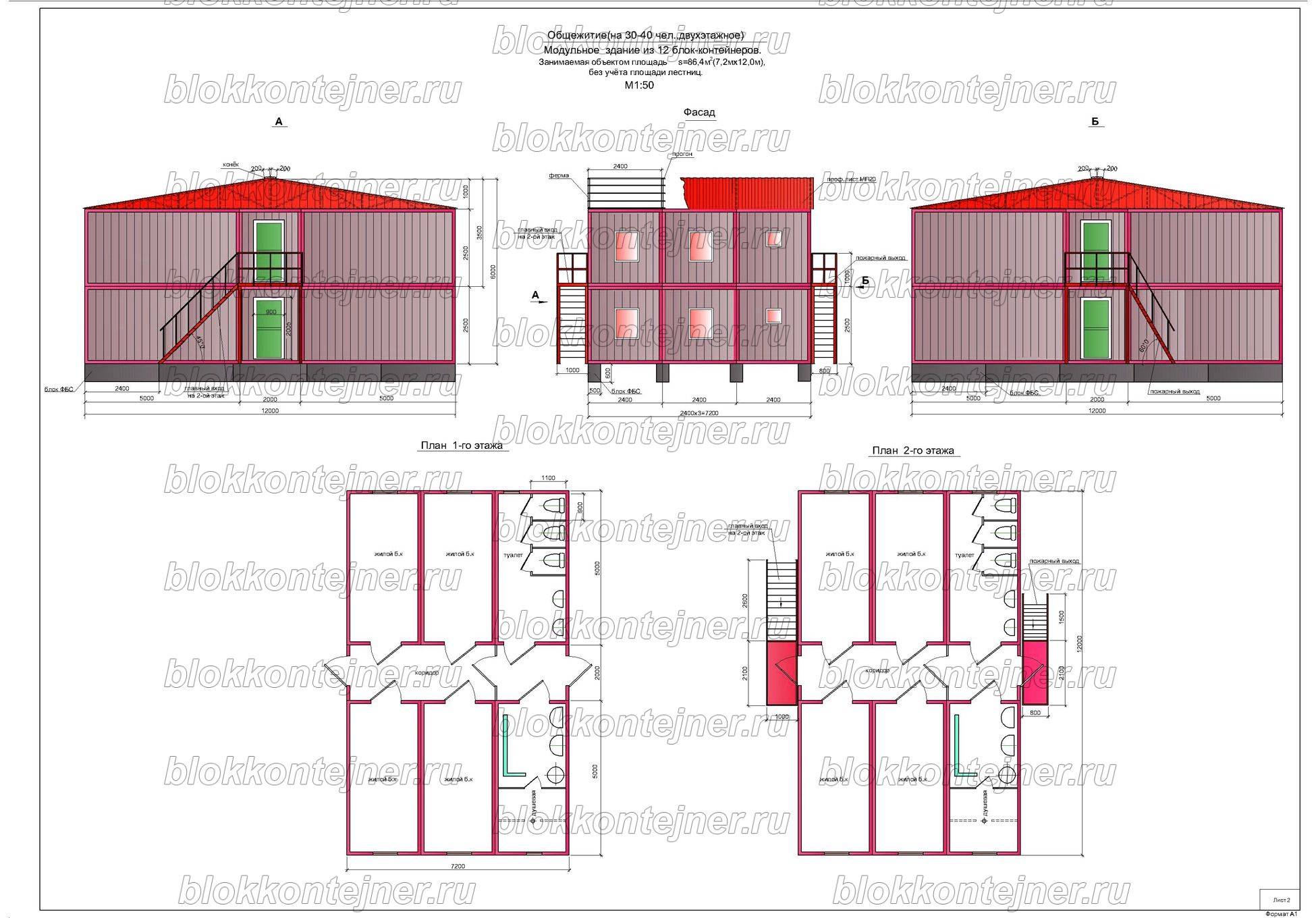 Общежитие на 40 человек, двухэтажное из 12-ти БК